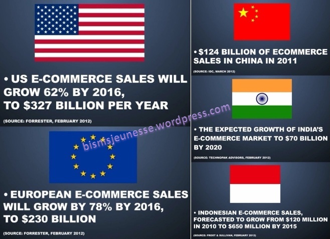 Bisa dilihat pada Gambar di bawah ini trend e-commerce dunia menurut lembaga riset antara lain : Forrester, IDC, Technopak Advisors dan Frost & Sullivan.