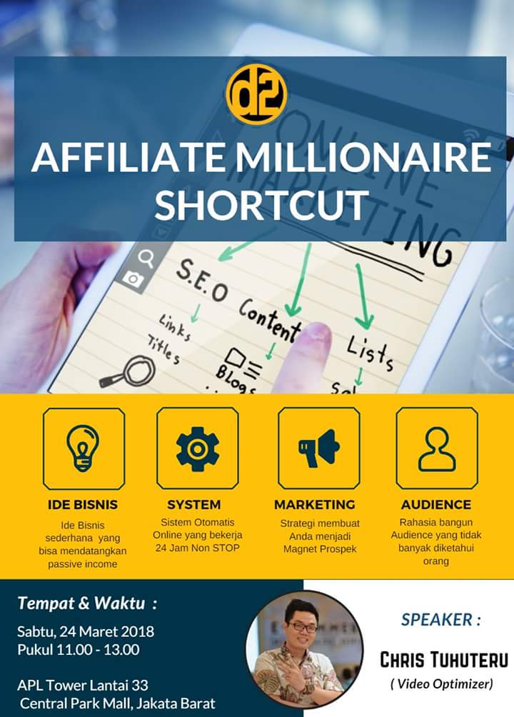 Seminar DASH2 System Jakarta kali ini mengambil topik “Affiliate Millionaire Shortcut”