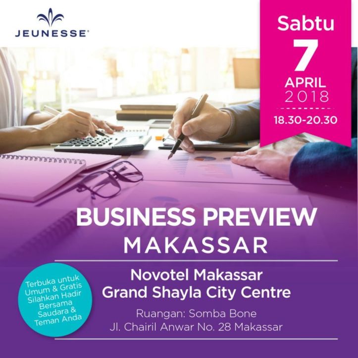 Inilah kesempatan Anda di Makassar untuk mengetahui Konsep Bisnis Jeunesse Global Indonesia secara lengkap.