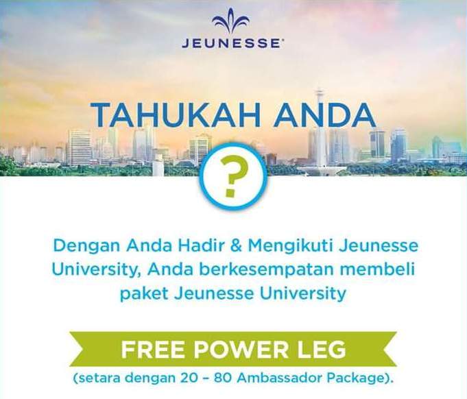 Bagi yang hadir Event Jeunesse University ini, dapatkan kesempatan untuk memperoleh POWER LEG Spesial.