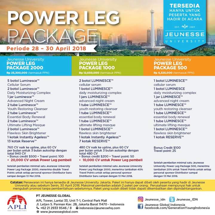 Kesempatan Terakhir Mendapatkan Paket Power Leg Jeunesse University April 2018
