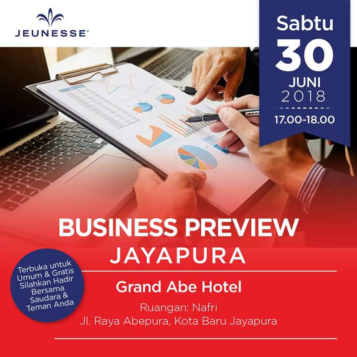 Inilah kesempatan Anda di Jayapura untuk mengetahui Peluang Bisnis Jeunesse Indonesia secara lengkap.