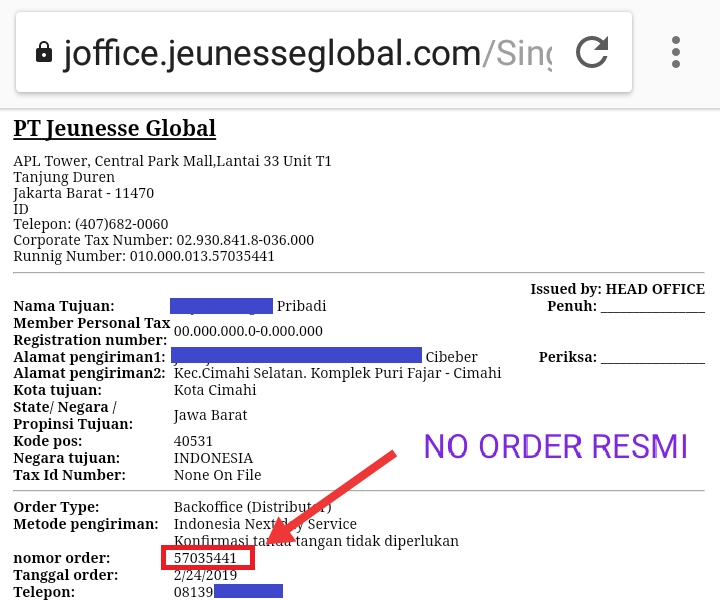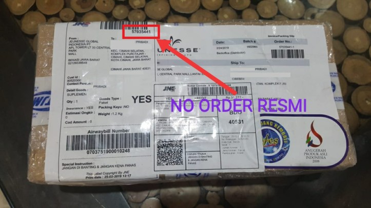 2. Pastikan ada NOMER ORDER Produk resmi dari Kantor Jeunesse Indonesia.