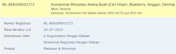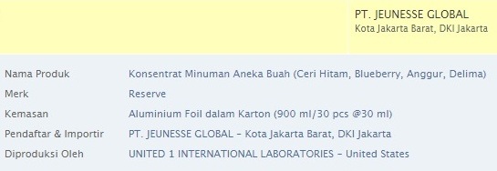 Bukti Nomor BPOM Resmi Reserve Jeunesse Indonesia