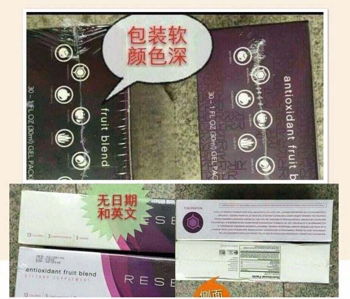 Pada kasus di luar negeri, pada box reserve jeunesse palsu tertulis “antioxidant fruit blend” padahal box reserve jeunesse asli tertulis “fruit blend”
