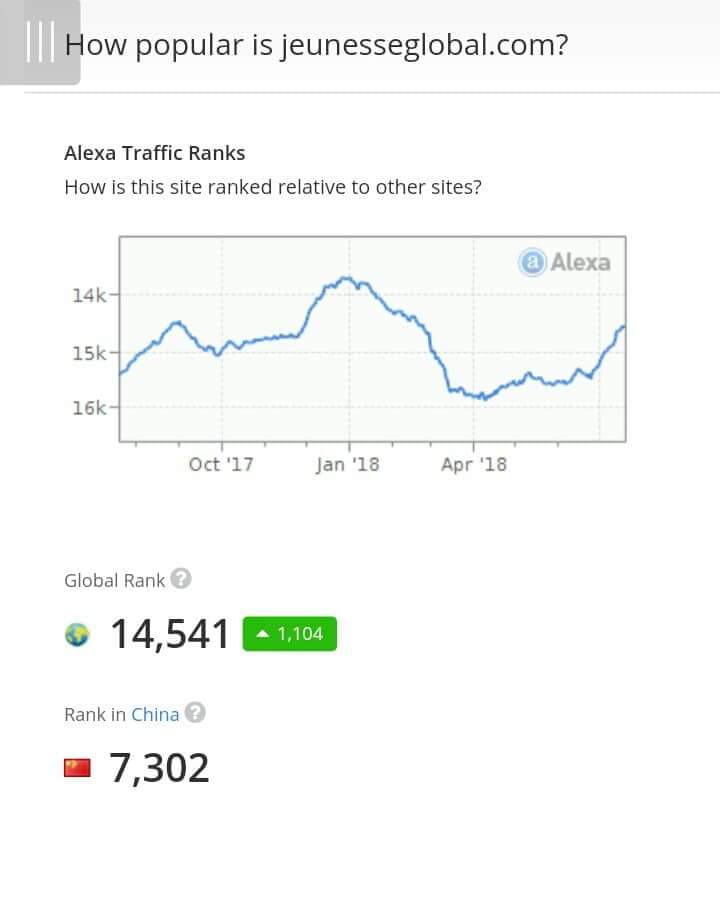 Informasi yang saya dapatkan dari Alexa, pengunjung terbanyak Web Ecommerce Jeunesse Global peringkat 1 dunia adalah dari China.