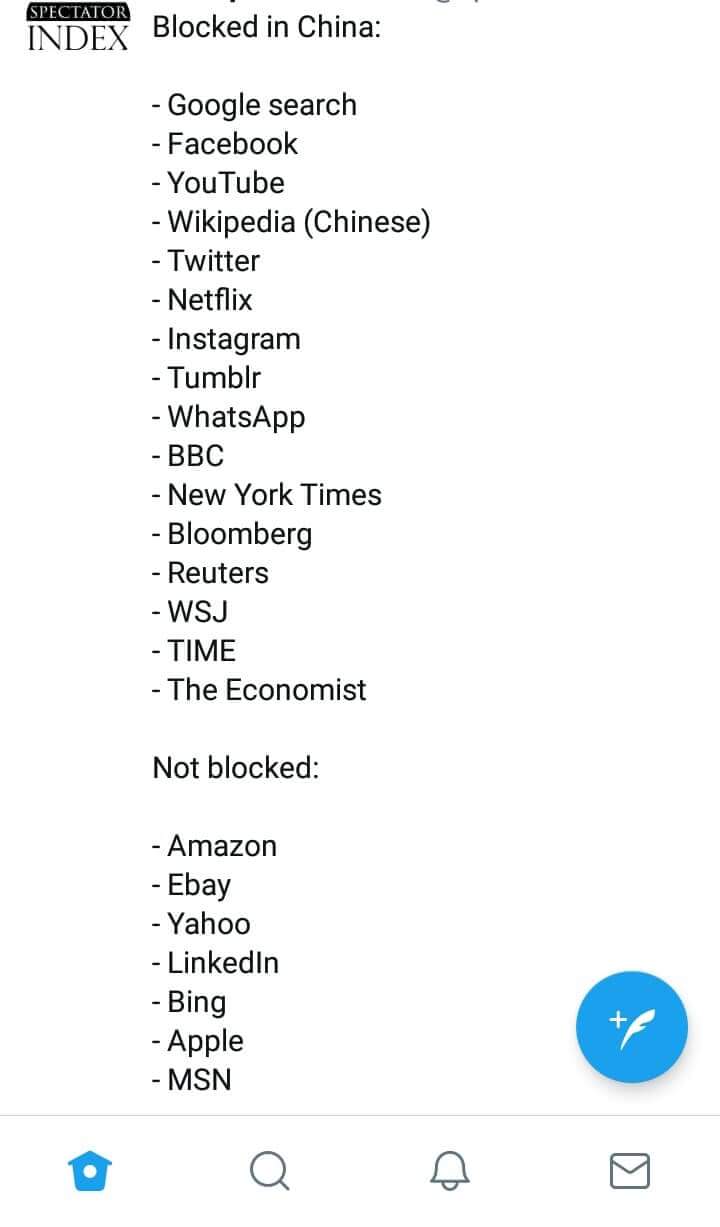 Kemudian baru-baru ini saya menemukan postingan di Twitter, dimana saya kembali teringat bagaimana para Raksasa Internet USA dilarang dan sulit menembus China. Contohnya seperti: