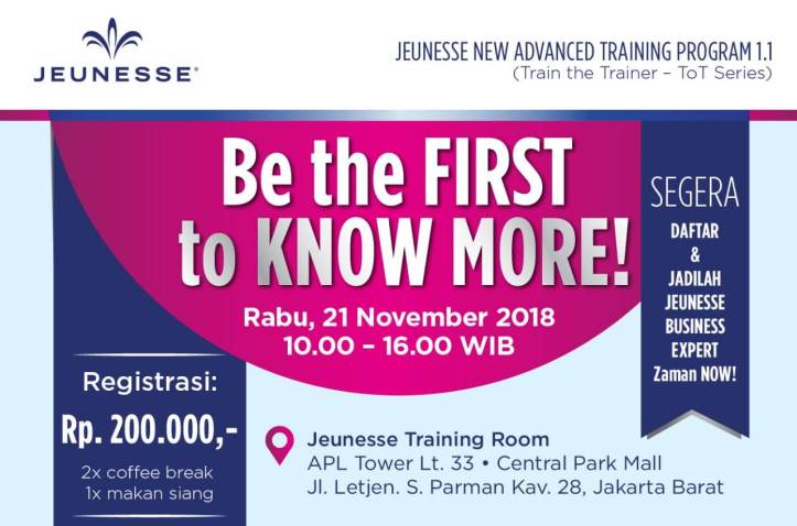 Berikut ini informasi Training Bisnis khusus untuk Distributor Jeunesse Indonesia
