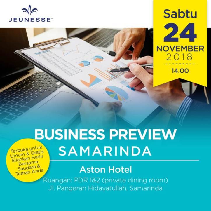 Inilah kesempatan Anda di Samarinda untuk mengetahui Konsep Bisnis Online Jeunesse secara lengkap.