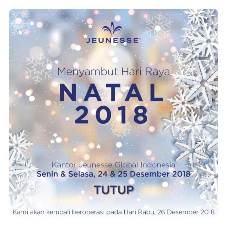 Menyambut Hari Raya Natal 2018, Kantor Jeunesse Global Indonesia akan TUTUP pada Hari Senin & Selasa, 24 & 25 Desember 2018