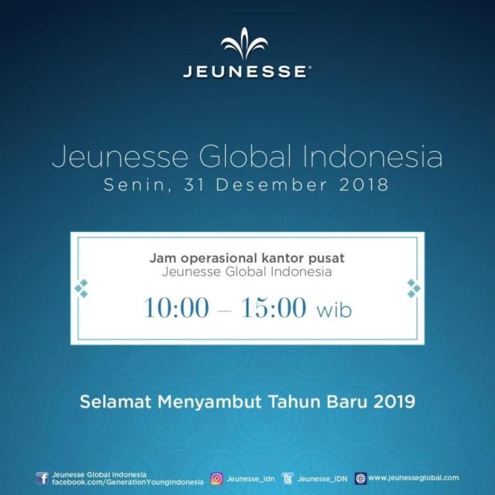 Informasi Jam Operasional Kantor Jeunesse Global Indonesia (akhir tahun 2018)