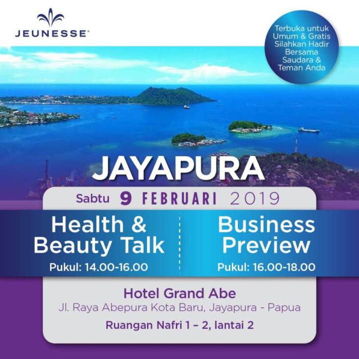 Inilah kesempatan Anda di Jayapura untuk mengetahui Konsep Bisnis Jeunesse Indonesia secara lengkap.