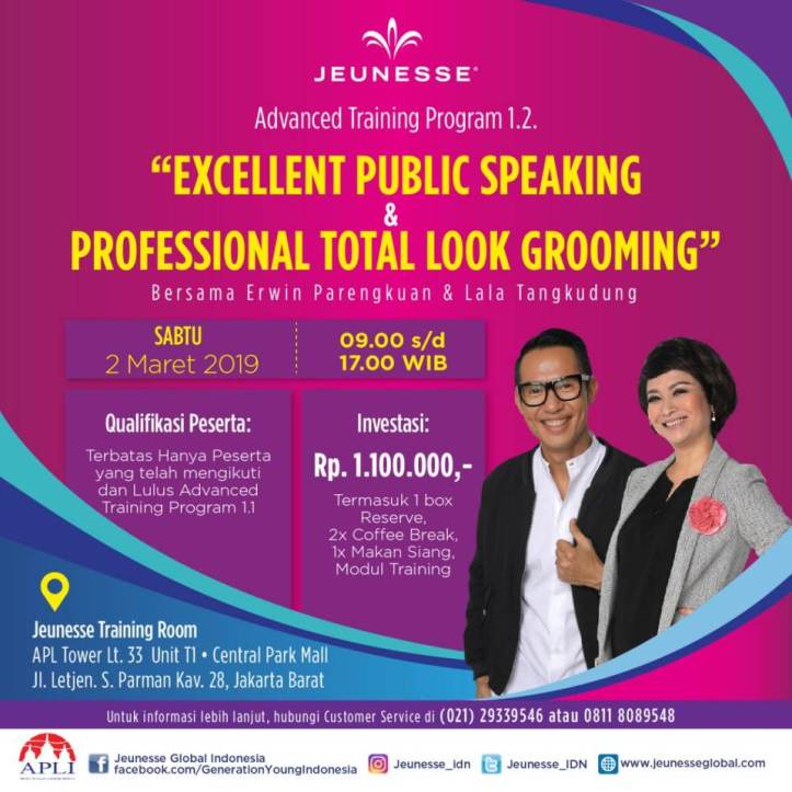 Jangan lupa untuk menghadiri Jeunesse Indonesia Advanced Training Program 1.2 hari ini.